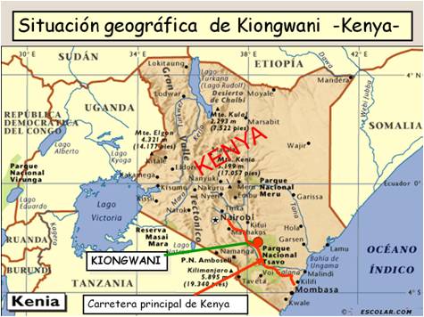 El poblado dista de la carretera principal, que une Nairobi con Mombasa, unos 5 Km. y a 94 de Nairobi. Se accede a él por unos caminos muy accidentados.
